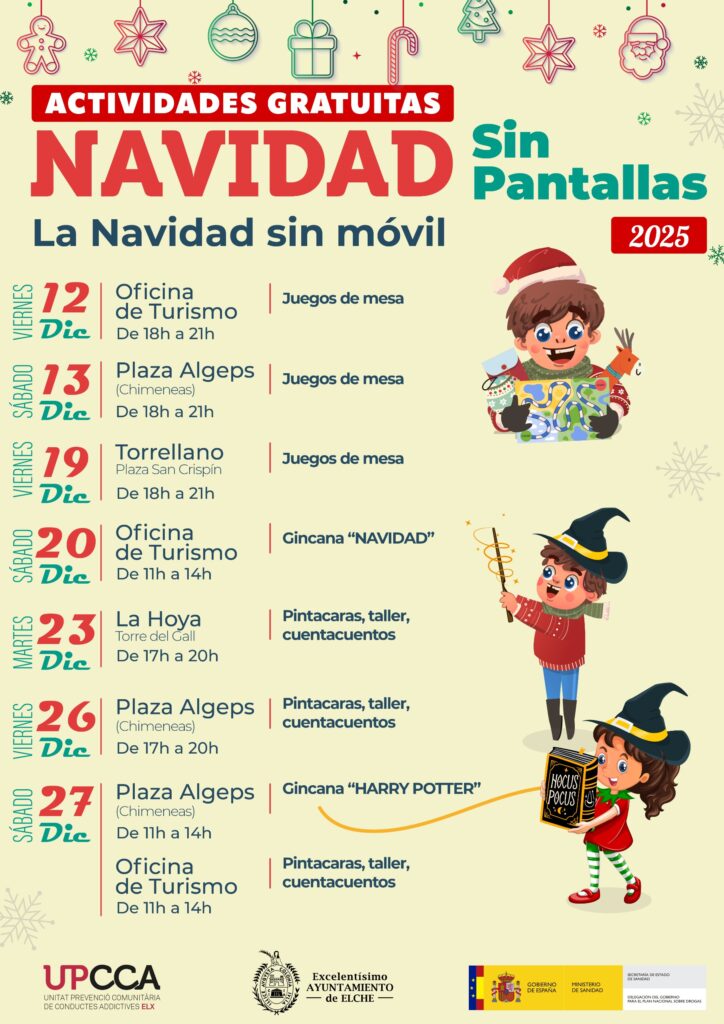 Llega una nueva edición de Navidad sin Pantallas. Del 12 al 27 de diciembre, el Ayuntamiento de Elche ha organizado diferentes actividades gratuitas en el casco urbano y pedanías con el objetivo de concienciar sobre el uso responsable de dispositivos digitales. La iniciativa ofrece juegos de mesa,pintracaras, talleres, cuentacuentos y gincanas familiares. Como en ediciones […]