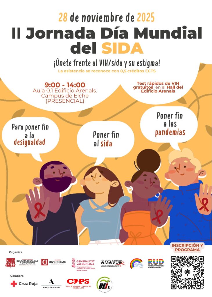El próximo viernes 28 de noviembre, de 09:00 a 14:00 horas, la Universidad Miguel Hernández de Elche (UMH), a través del Vicerrectorado de Cultura, Igualdad y Diversidad, ha organizado la II Jornada Día Mundial del Sida. Será en el aula 0.1 del edificio Arenals del campus de Elche y tiene como objetivo fomentar la sensibilización, el […]