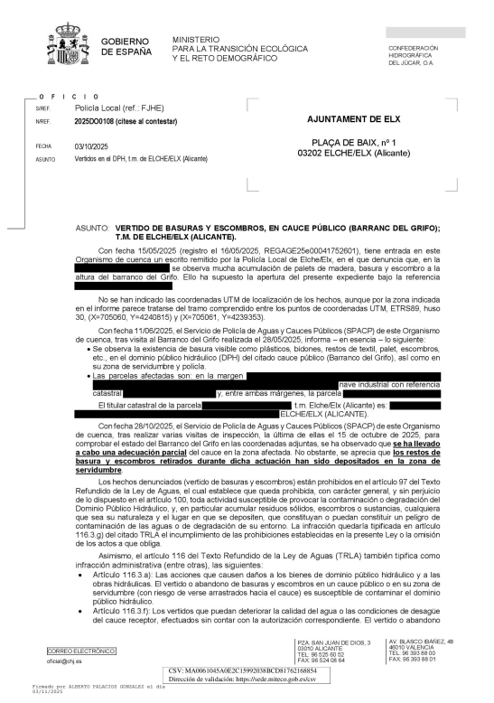El pasado 3 de octubre, la Confederación Hidrográfica del Júcar exigió mediante un comunicado al Ayuntamiento de Elche que debían limpiar de basura y escombros el barranco de Grifo y que serían sancionados en caso de negarse. Así lo ha confirmado esta mañana el alcalde de Elche Pablo Ruz, que ha vuelto a pedir la […]