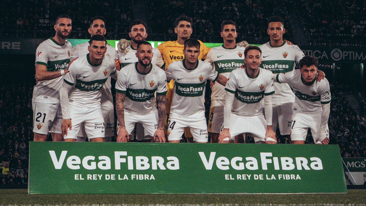 Once inicial Elche CF: Matías Dituro, Pedro Bigas, Leo Petrot, Tete Morente, Aleix Febas, Marc Aguado, Lucas Cepeda, Germán Valera, Álvaro Rodríguez, André Silva