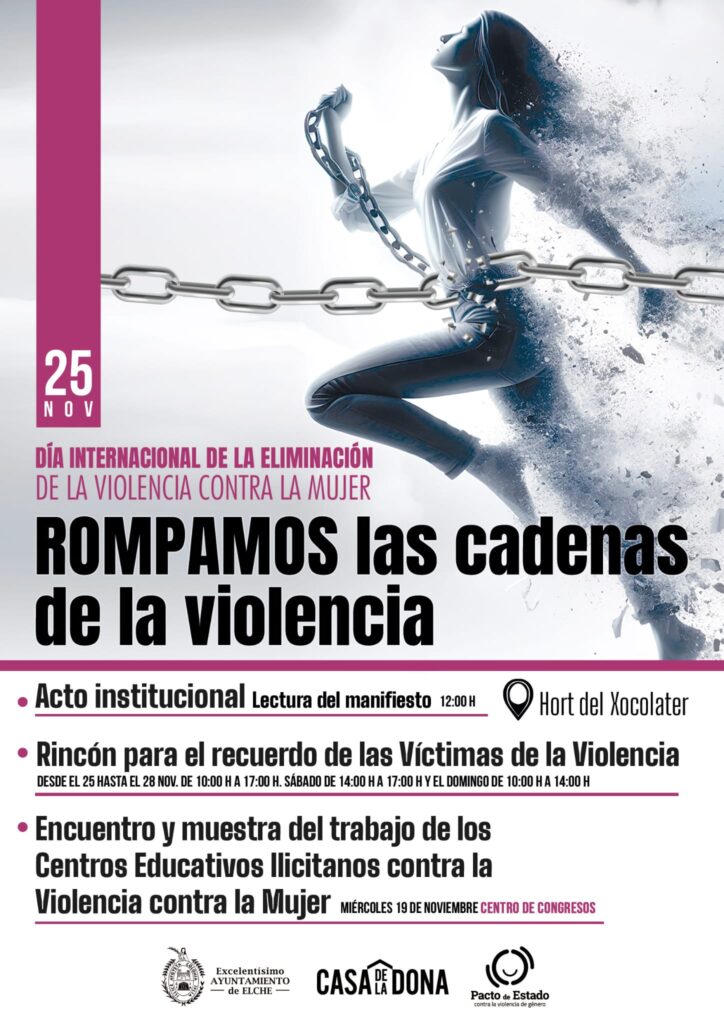 El próximo 25 de noviembre se celebra un año más el Día Internacional para la Eliminación de la Violencia contra la Mujer y el Ayuntamiento de Elche ha presentado esta mañana los actos organizados a través de la Concejalía de Mujer. Este año el lema es ‘Rompamos las cadenas de la violencia’ y será un […]